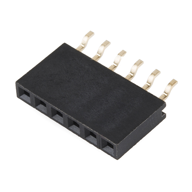 This is a SMD 6 pin right angle female header. We realized that we have had the male version of this header available for awhile now, but never the female. Now you have the ability to get both!
