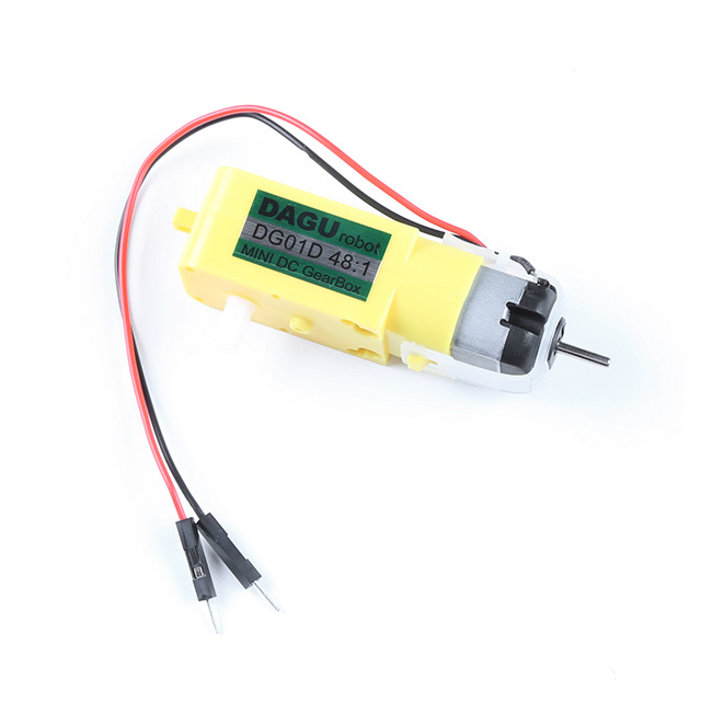 This is a hobby gearmotor from DAGU. These gearmotors are the same ones recommended for use in the Shadow Chassis and offer a cheap and easy-to-use setup to get your wheels turning. Each Hobby Gearmotor also possess a 9mm long output on a straight axis.