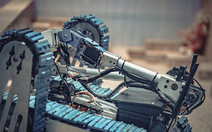 The combination of a wide field of view and global shutter sensor on the D435i make it the preferred solution for applications such as robotic navigation and object recognition. The wider field of view allows a single camera to cover more area resulting in less “blind spots”. The global shutter sensors provide great low‑light sensitivity allowing robots to navigate spaces with the lights off.