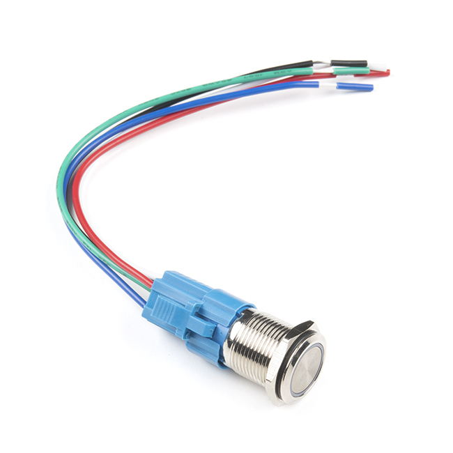 This pushbutton comes with a latching cable with 5 leads. Making it easier to attached to breadboards and extend the reach of your project.