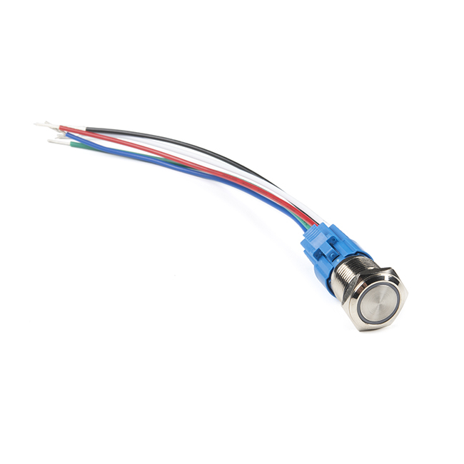 This is a perfect choice if you are in need of a heavy duty push button! These metal push buttons are a very tough, small, panel-mount momentary switch with an illuminated white LED ring. It is a SPDT with 16mm threading and 1mm pitch. This button is perfect for basic On/Off functions. Overall length (including leads) is 1.5" and has small solder lugs for connection. These momentary buttons are rated up to 3A and 250VAC while the LED is rated for 5-12V.