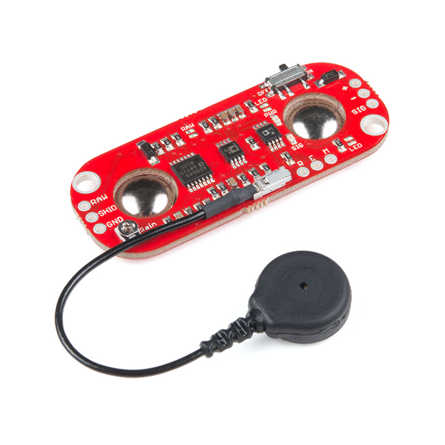 The MyoWare Muscle Sensor is the latest revision of the Muscle Sensor of old, now with a new wearable design that allows you to attach biomedical sensor pads directly to the board itself getting rid of those pesky cables. This new board also includes a slew of other new features including, single-supply voltage of +3.1V to +5V, RAW EMG output, polarity protected power pins, indicator LEDs, and (finally) an On/Off switch. Additionally, we have developed a few shields (Cable, Power, and Proto) that can attach to the Myoware Muscle Sensor to help increase its versatility and functionality!