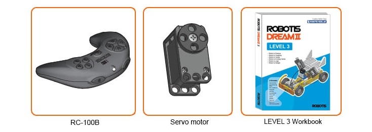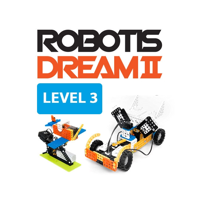 ROBOTIS DREAM II LEVEL 3 is a robot kit to learn various topics from science theory of daily life such as infrared, soun, velocity, acceleration, friction and action & reaction to technical theory such as 4-wheel drive and engine systems.