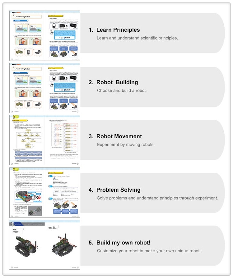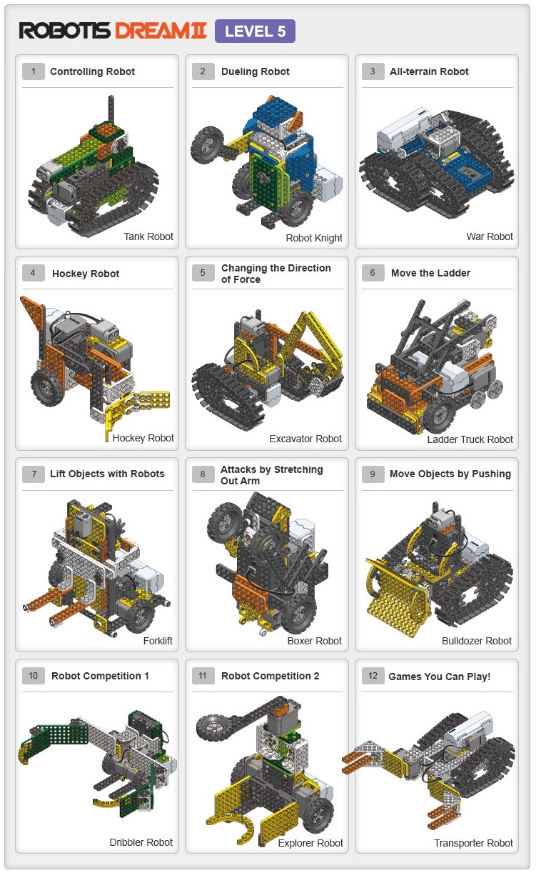 ROBOTIS DREAM II LEVEL 5 comes with 12 chapters of assembly, applications of principles, and problem solving.