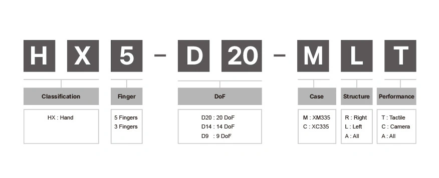 20 DoF / 4 DoF per finger (HX5-D20)
