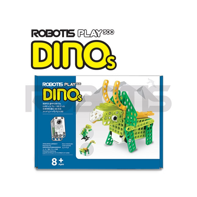 ROBOTIS PLAY 300 DINOs is a friendly and colorful dinosaur-themed robotics kit featuring a motorized control box that allows your children’s creations to come to life and move! The kit also features ROBOTIS’ patented rivet system, which allow creative minds to explore endlessly and build further on their creativity by coming up with new figures and designs.