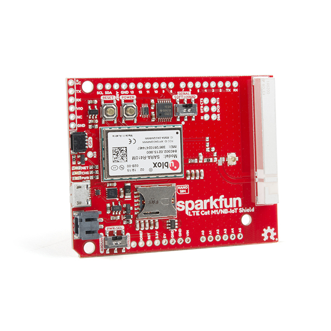 The SparkFun LTE CAT M1/NB-IoT Shield equips your Arduino or Arduino-compatible microcontroller with access to data networks across the globe. This shield adds wireless, high-bandwidth cellular functionality to your IoT project while maintaining low power consumption and a small footprint. The SparkFun LTE CAT M1/NB-IoT Shield is based off the Arduino R3’s footprint that allows you to easily incorporate it with favorite Arduino-based device.