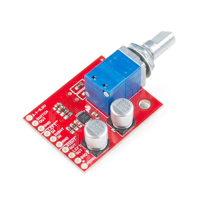 With the SparkFun Noisy Cricket Amplifier, you will be provided with a board that fits into the palm of your hand that requires minimal setup that allows you to utilize both stereophonic and monaural sound!