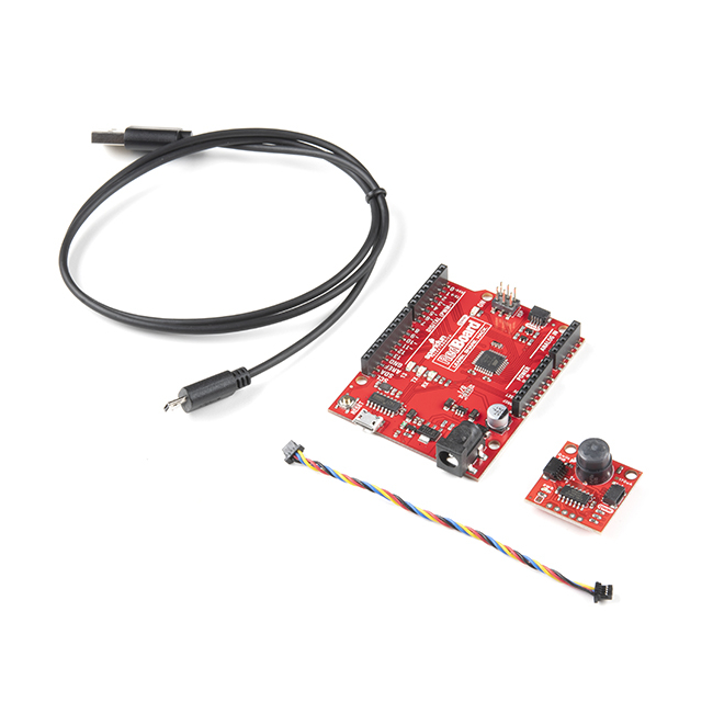 Also included in this kit is a SparkFun RedBoard Qwiic to drive your PIR sensor. The SparkFun RedBoard Qwiic can be programmed over a USB Micro-B cable (included) using the Arduino IDE: Just plug in the board, select "Arduino UNO" from the board menu and you're ready to upload code. To hookup your PIR sensor to your RedBoard we have included a 100mm length Qwiic cable.