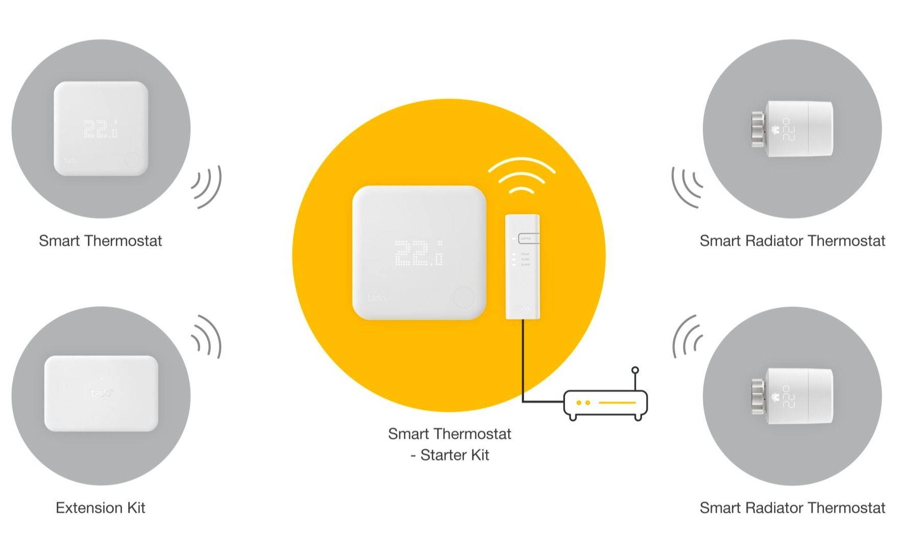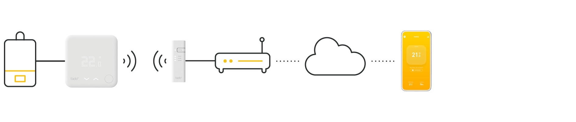 | Internet Connection | The Starter Kit includes the tado° Internet Bridge, which is connected to your router. It connects your Smart Thermostat to the internet via radio network. |
