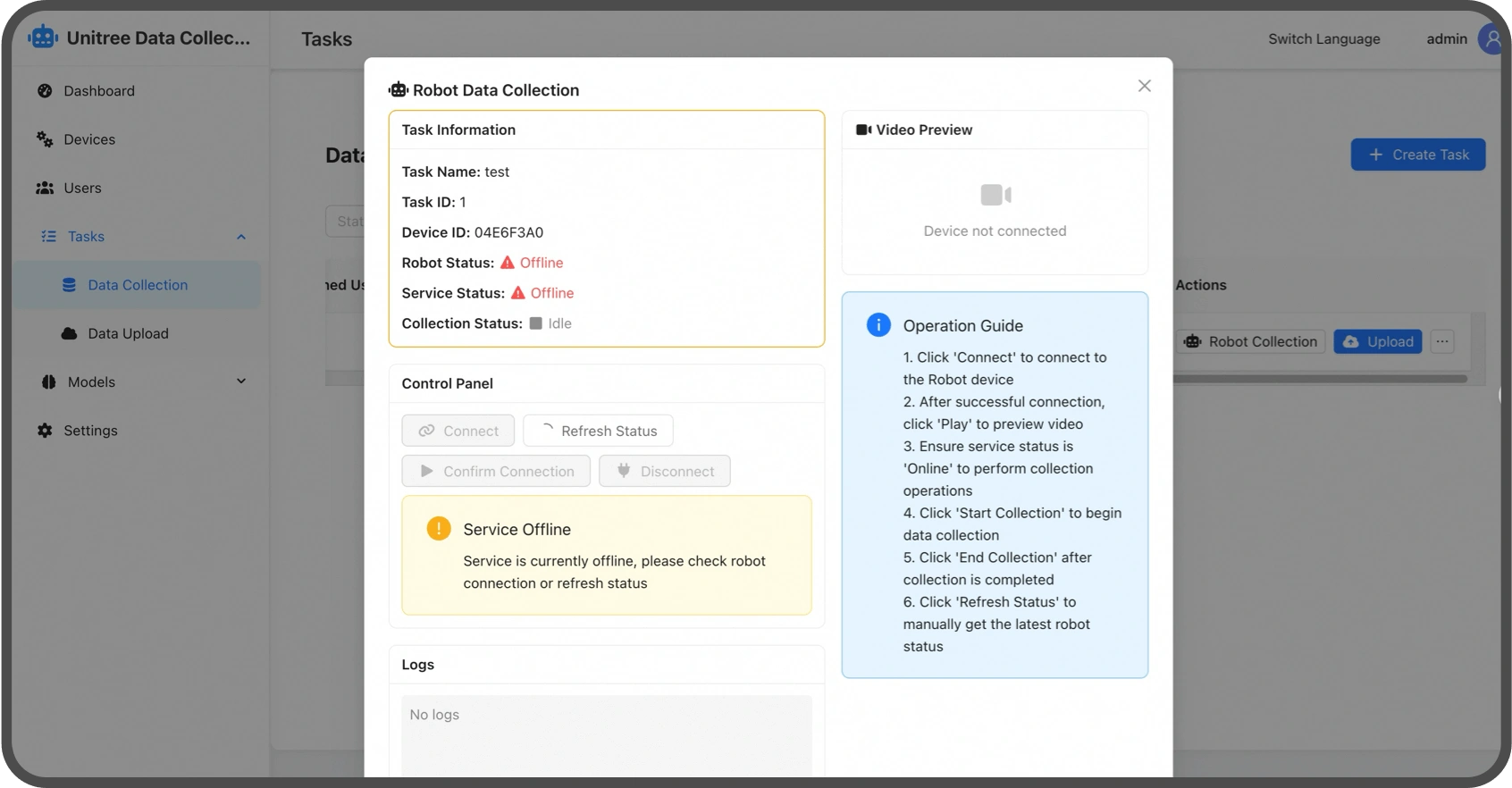 Collect multimodal robot operation data.