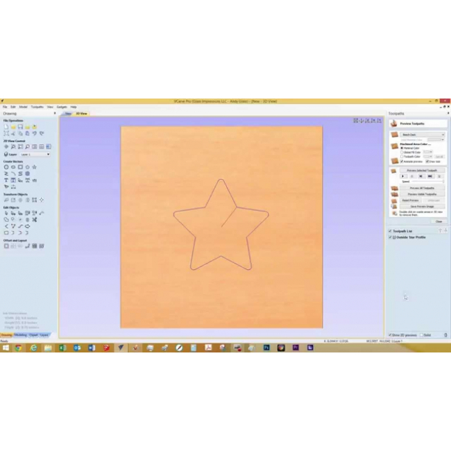 The software can import 2D designs but also provides a full set of drawing and editing tools. The toolpath options cover all typical 2D routing operations such as profiling, pocketing, auto-inlays and drilling as well as 2.5D strategies such as v-carving, prism carving, molding toolpaths, fluting and even a decorative texturing strategy.